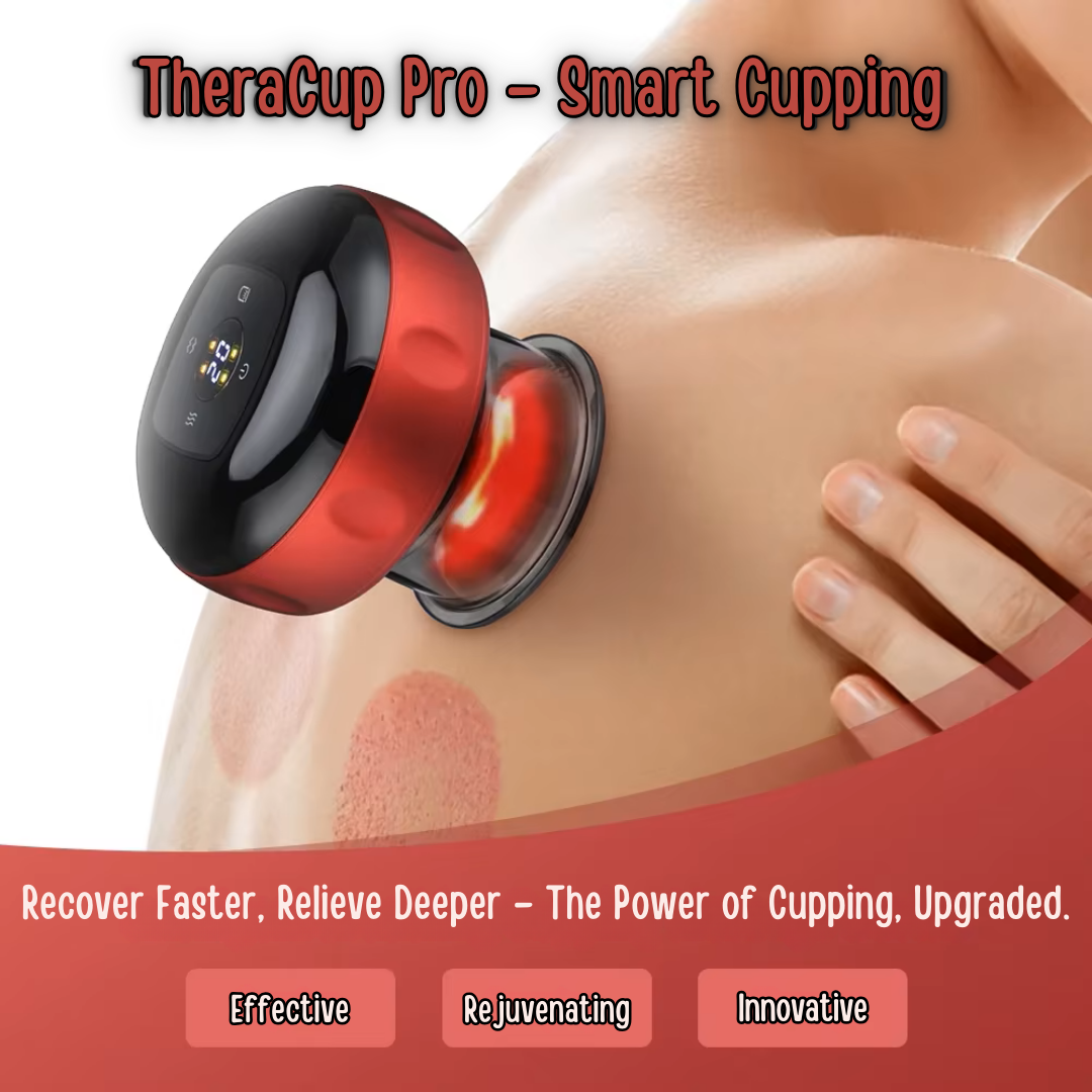 Unlike traditional cupping, the TheraCup Pro is electric, meaning no open flames, no manual pumps, and no guesswork. It features adjustable suction levels, red light therapy, and a 20-minute timer for safe, customized treatment.